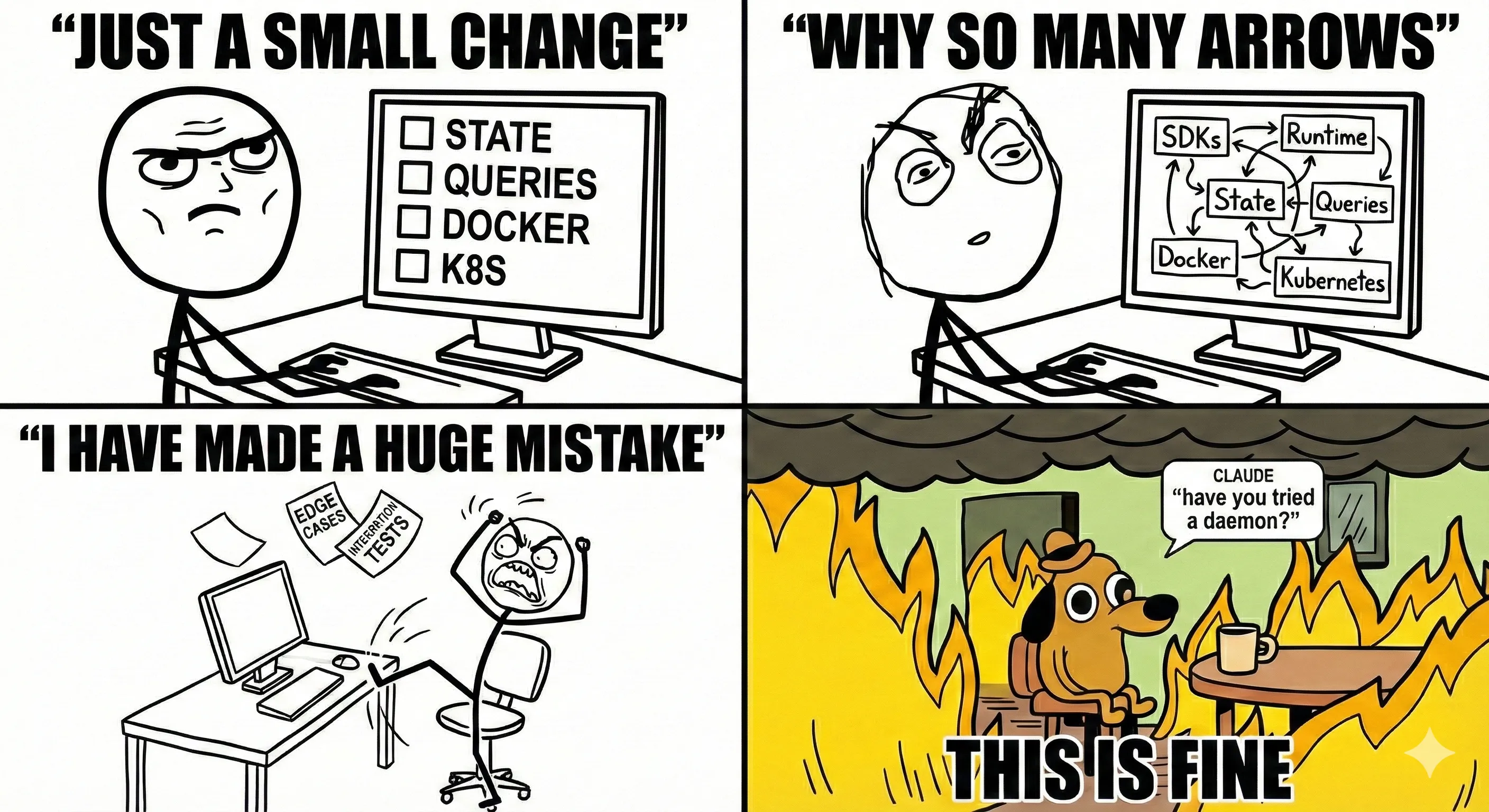 Handling state and queries in a multi-environment, multi-bot-type system like the0 while testing multiple SDKs was tough even with Claude's help. But by breaking down the problem into manageable pieces and leveraging subprocesses, sidecar containers, and environment-based mode detection, we were able to build a robust and flexible architecture that meets our needs. The key takeaways from this journey are:
